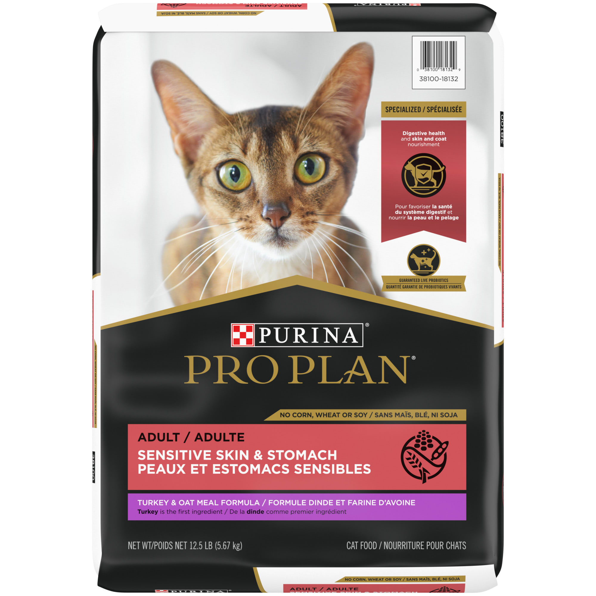 Purina Pro Plan With Probiotics Sensitive Skin Stomach Natural Dry Cat Food Turkey Oat Meal Formula 5 5 Lb Bag Walmart Com
