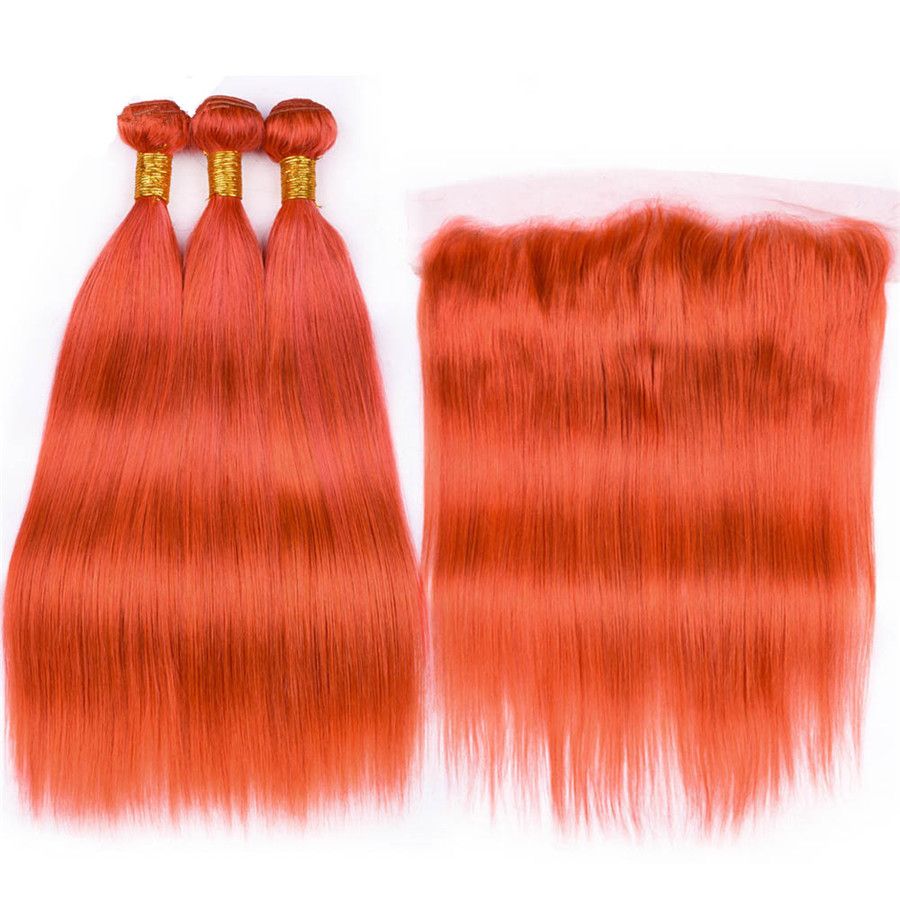 Orange Hair Extensions Human Hair With 13x4 Lace Frontal Closure Russian Human Virgin Straight Hair Weave With Lace Frontal Free Ship From Virgin Hair01 33 92 Dhgate Com
